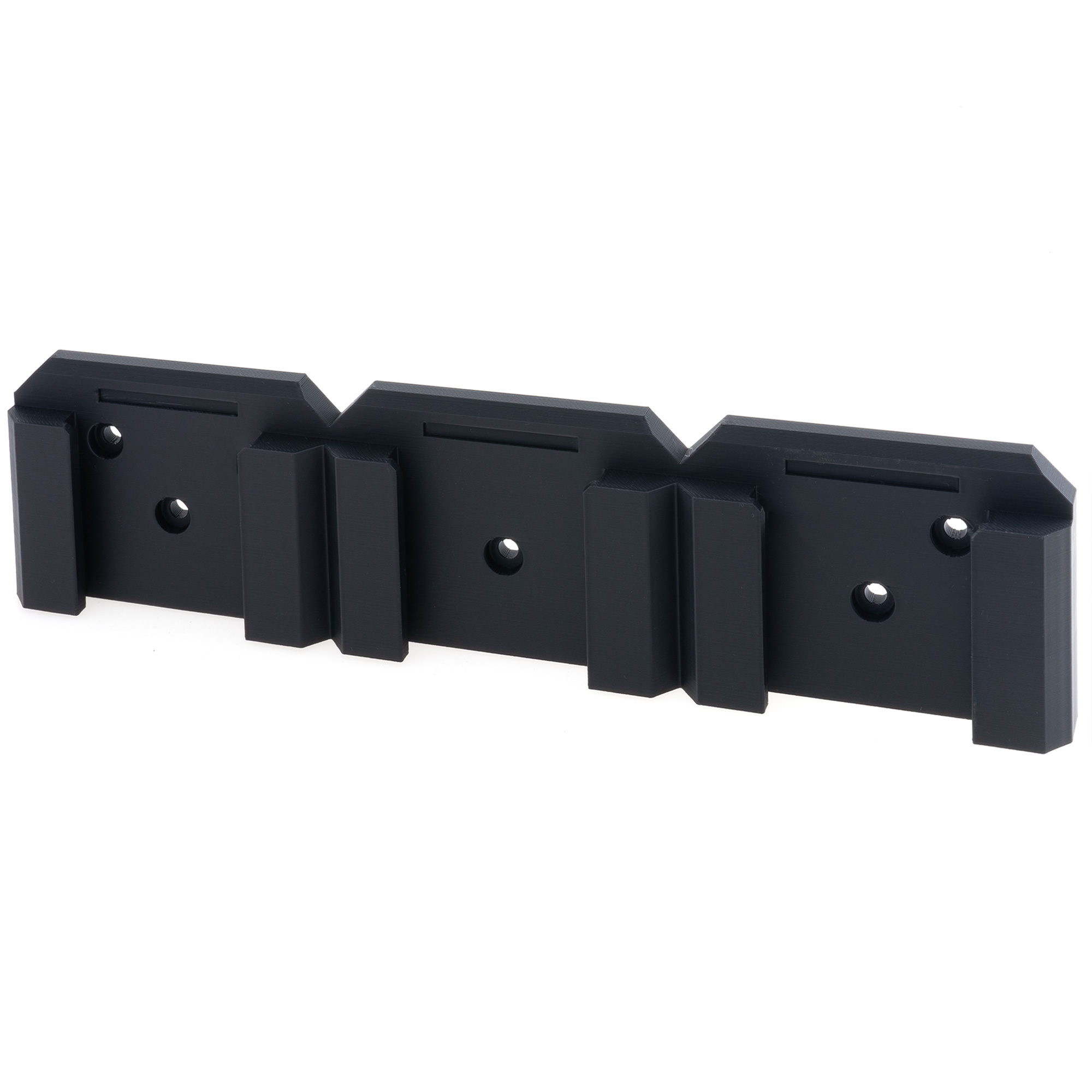 Platzsparendes Design: Mit der Möglichkeit, bis zu drei Akkus aufzubewahren, maximiert diese Wandhalterung den verfügbaren Platz in Ihrer Werkstatt und hält Ihre Akkus griffbereit.