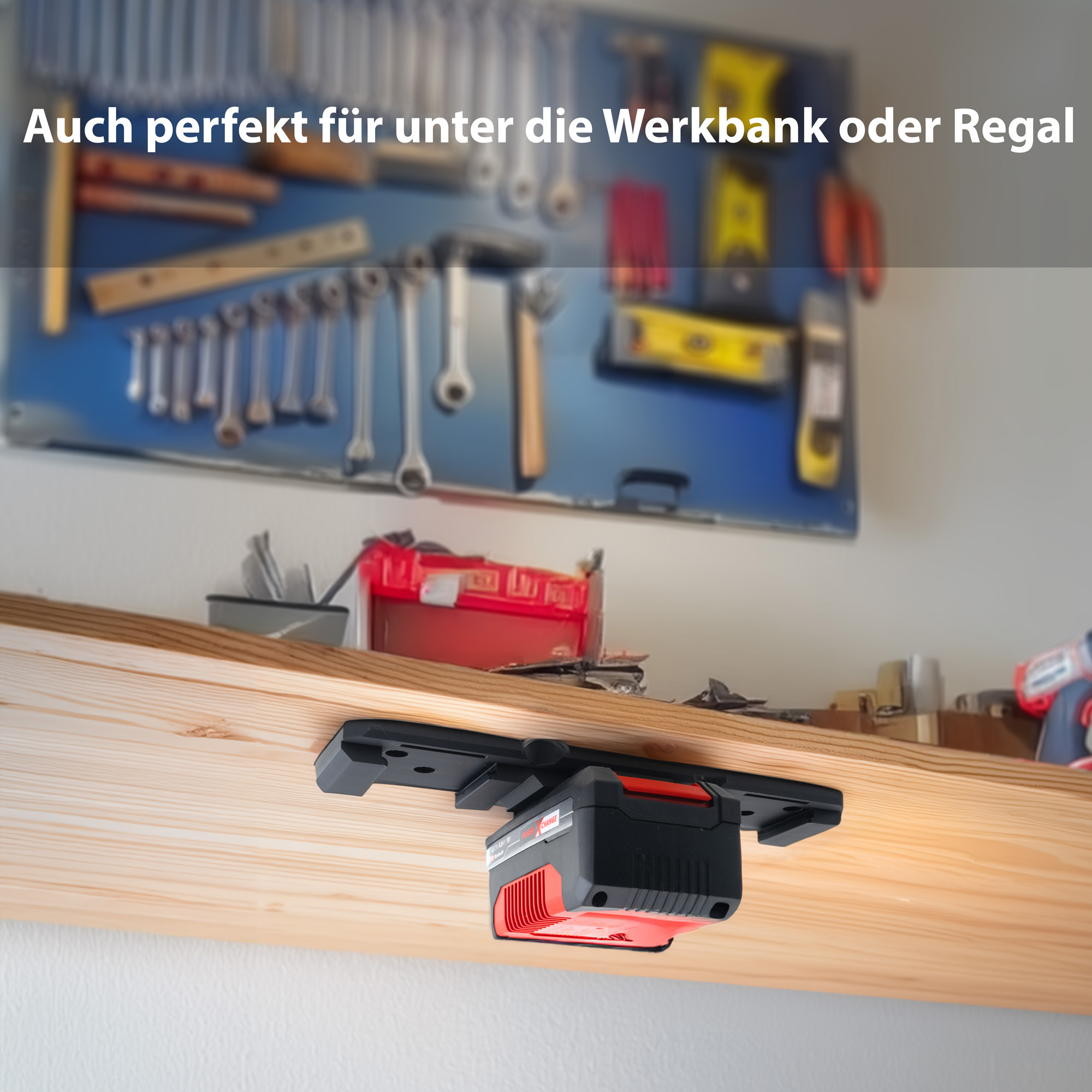 Universelle Anwendung: Perfekt geeignet für Einhell Power X-Change Akkus, passt sich die Halterung nahtlos in verschiedene Arbeitsumgebungen ein.